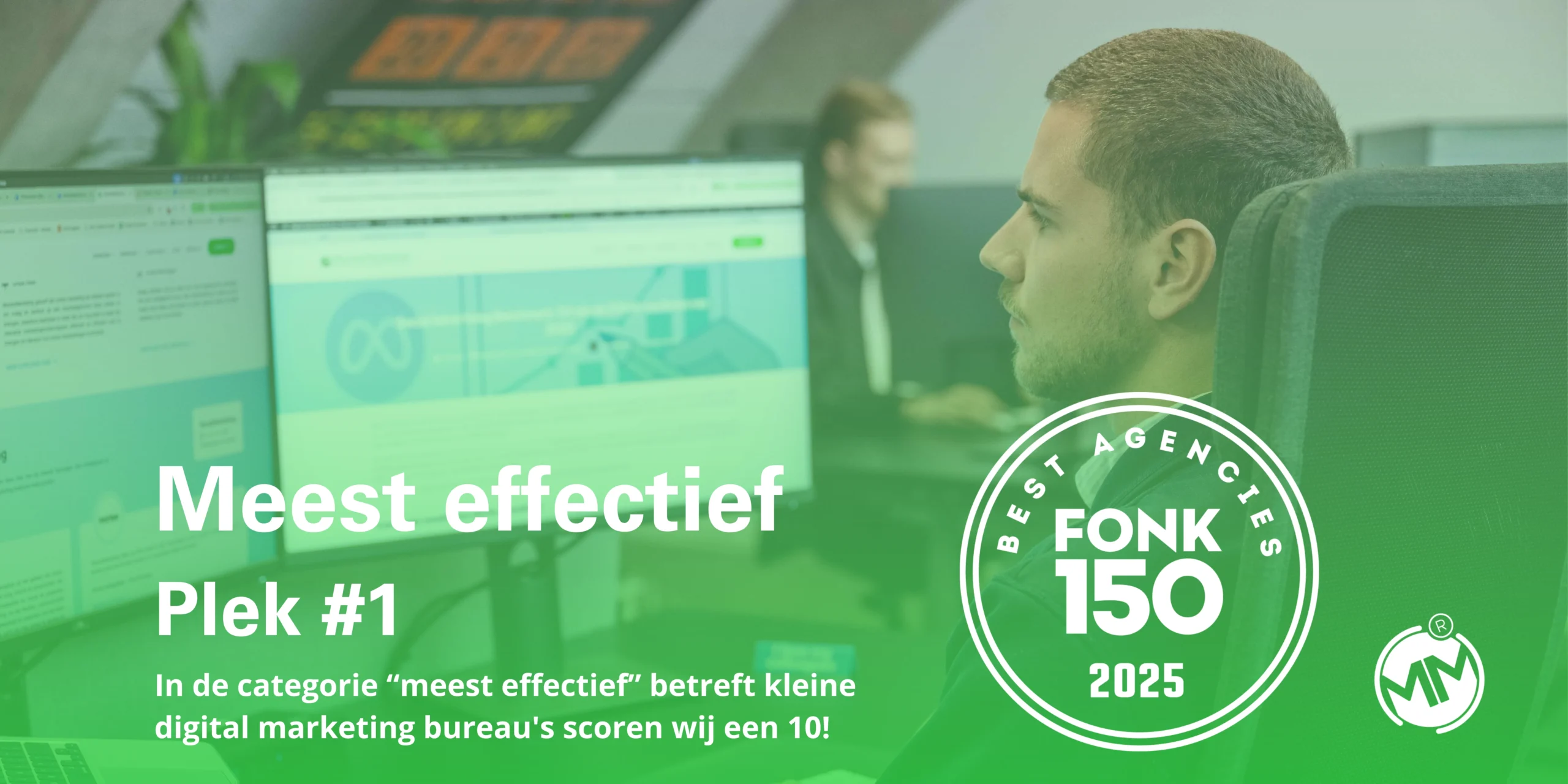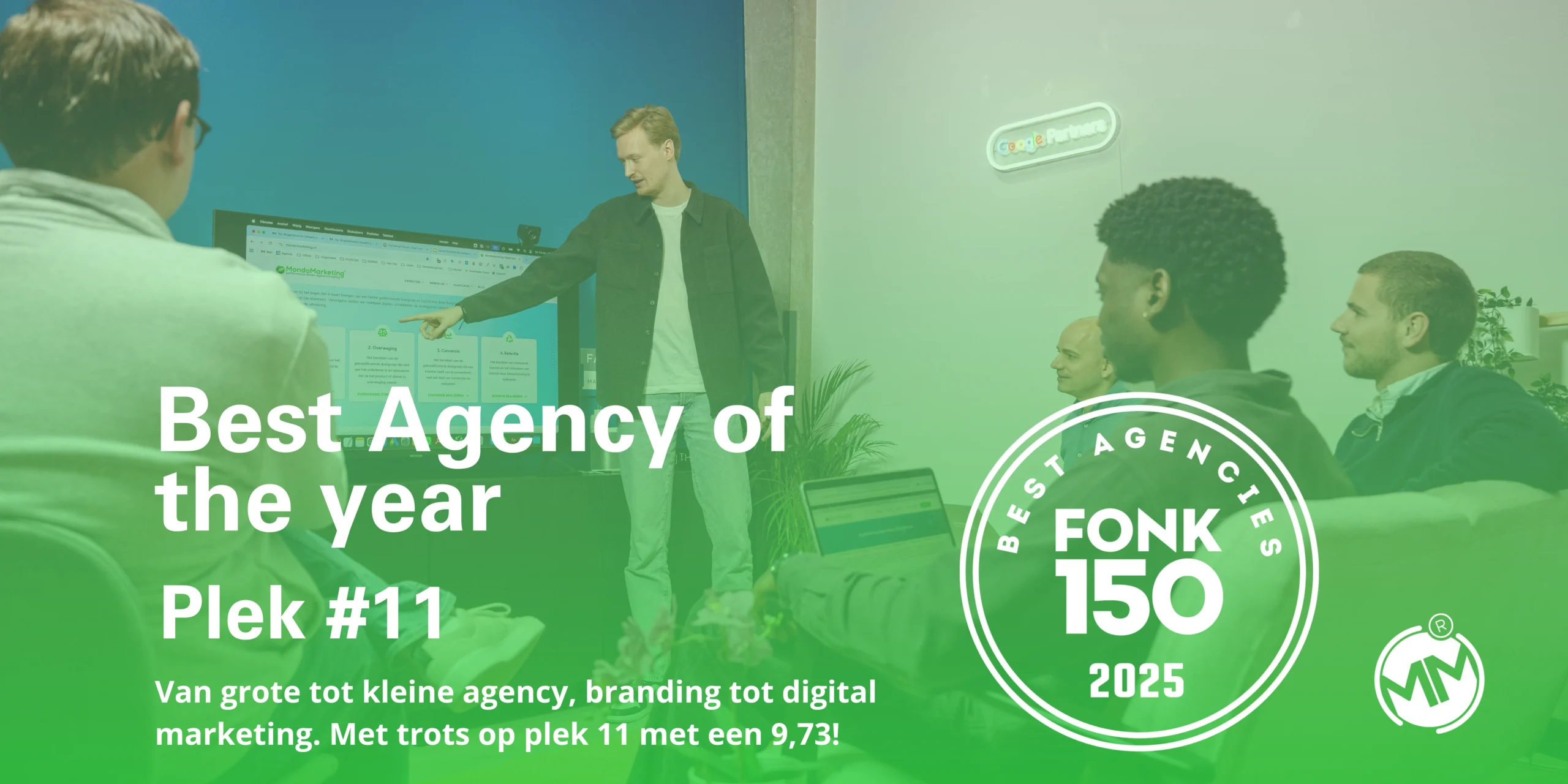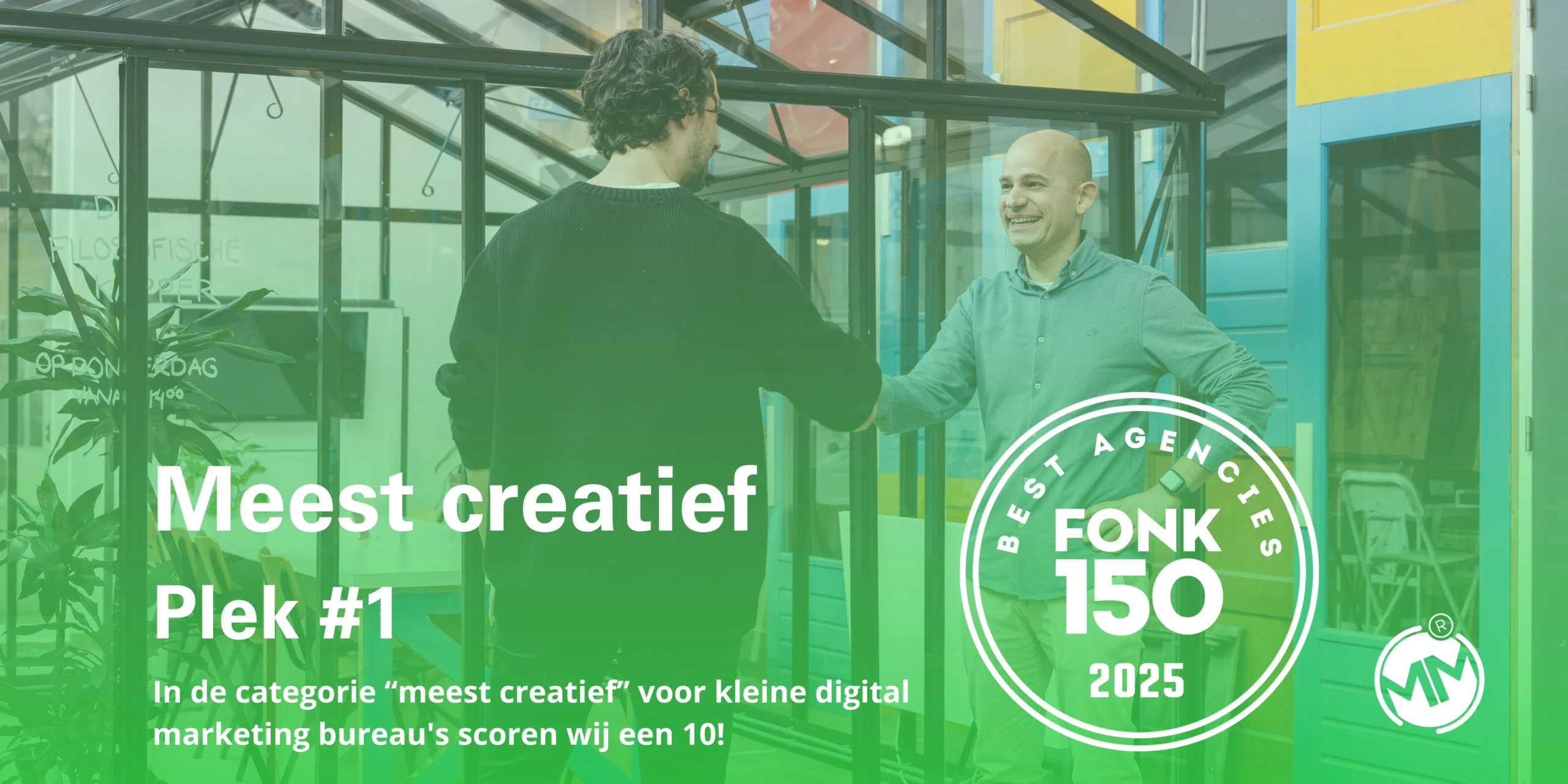 De FONK150 wordt gezien als een van de belangrijkste ranglijsten binnen de Nederlandse marketingbranche. De lijst is volledig gebaseerd op klantwaarderingen en vormt daarmee een directe weerspiegeling van het vertrouwen dat onze klanten in ons stellen. Dat we dit jaar als beste kleine digital agency van Nederland zijn beoordeeld, en daarmee het beste online marketing bureau binnen de categorie, laat zien dat onze inzet op kwaliteit, samenwerking en resultaatgericht werken wordt herkend én gewaardeerd.