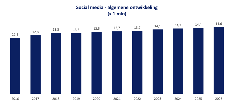 In 2026 maken 14,6 miljoen Nederlanders van 15 jaar en ouder gebruik van één of meerdere social media platformen. De stijgende lijn die we al jaren zien, zet zich dus gewoon door.