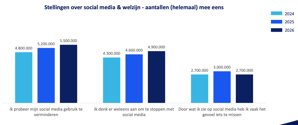 Een interessante ontwikkeling uit het Nationale Social Media Onderzoek 2026 is dat Nederlanders bewuster omgaan met hun social media gebruik.